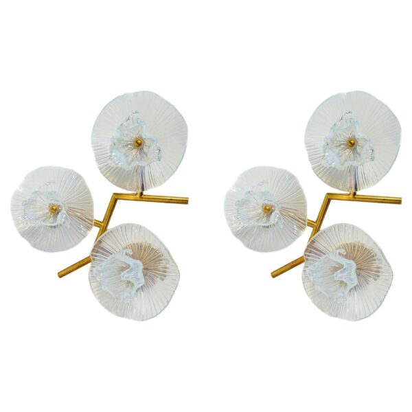 Pair Of Organic Modern Murano Floral Wall Lights, Contemporary