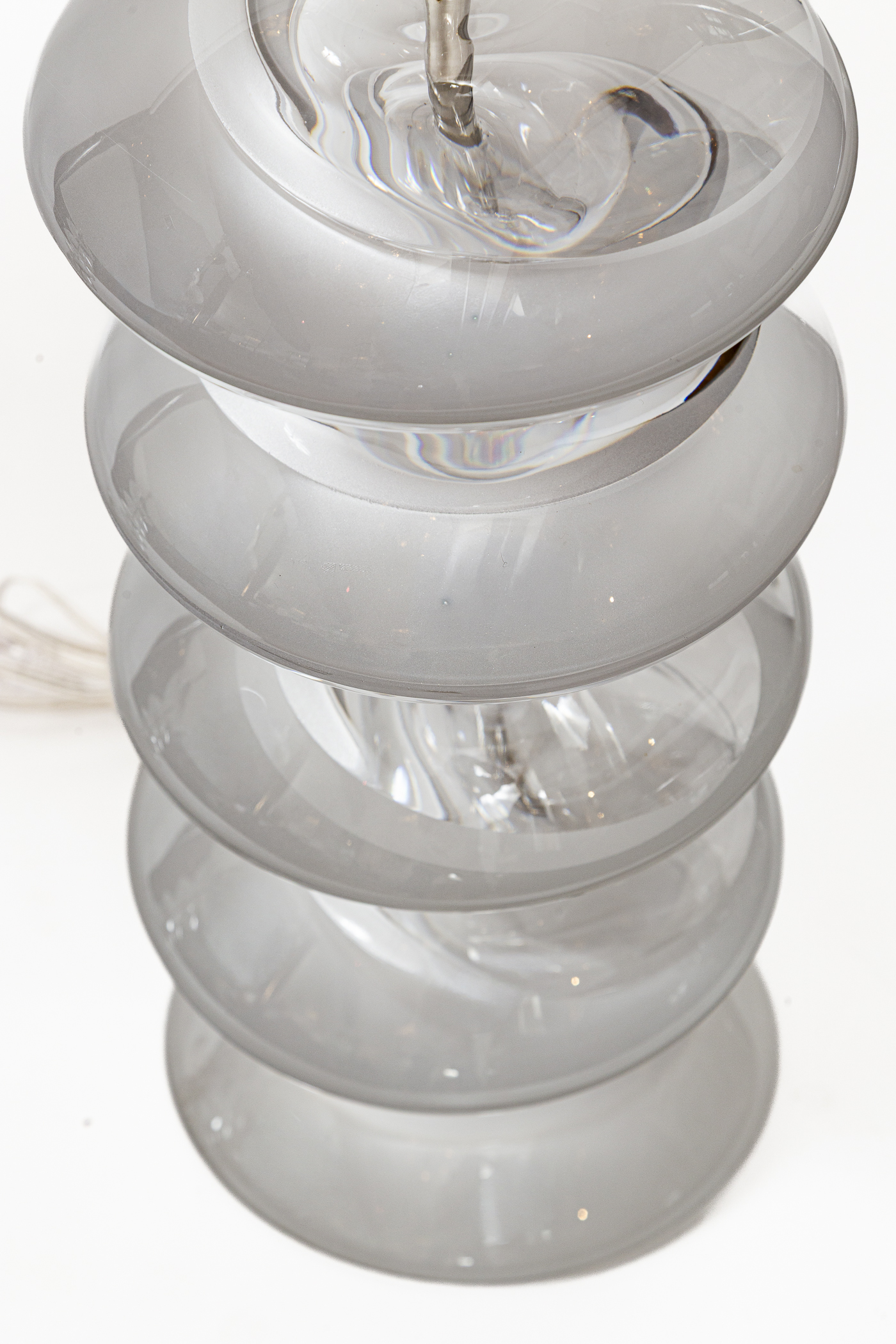 Pair Of Vintage Italian Murano Stacked Disk Table Lamps By Cenedese