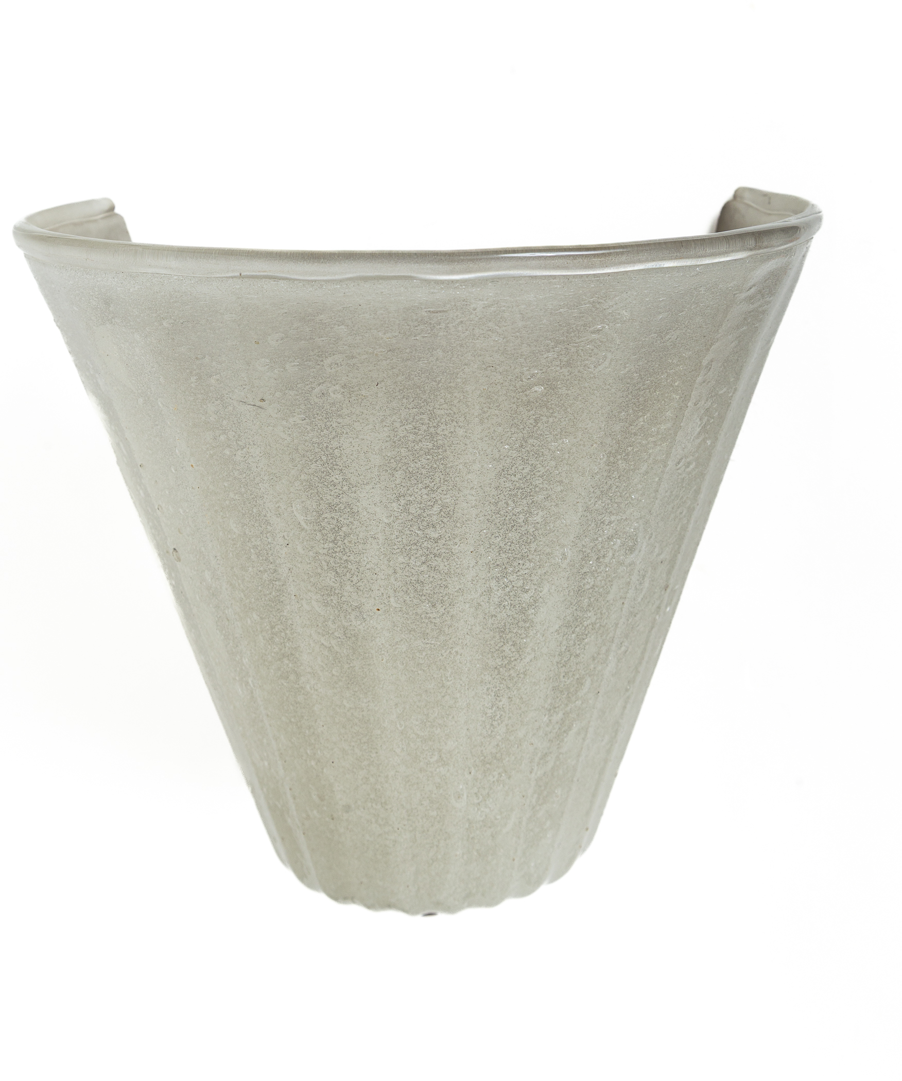 A wonderful set of two Murano glass cone shaped flush wall mounts blown in the pulegoso technique, a controlled manner of densely filled tiny bubbles offering a unqiuely textured and warm illumination. Newly mounted patinated bronze on brass hardware and re-electrified each with E12 socket.